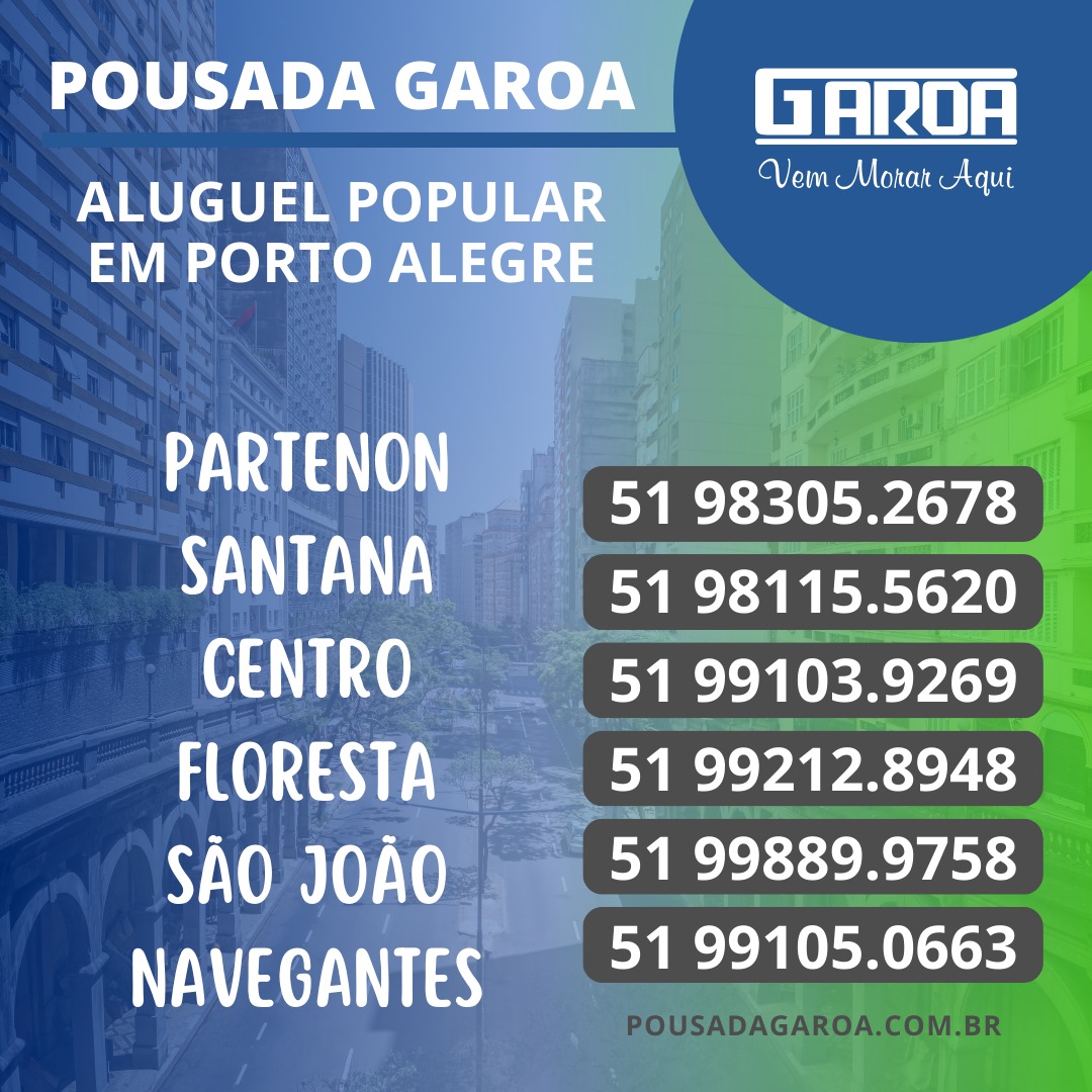 GAROA CENTRO: Quarto individual a partir de R$ 550. Morar no centro de POA? Agora dá! Mobília, água, luz, gás, internet, máquina de lavar roupa. Só paga R$ 550 por mês e nada mais! Próximo da Av. Borges de Medeiros, no coração de Porto Alegre. Vagas Limitadas! Rua Riachuelo. Whats (51) 99103.9269 - (51) 98642.6196